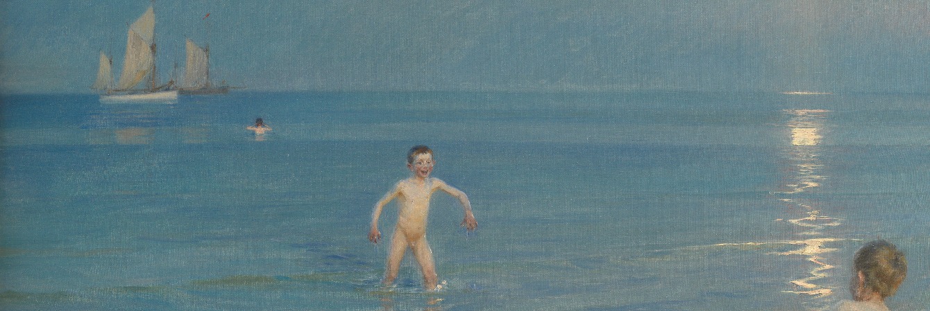 La scena mostra un angelo alato seduto con sguardo assorto, accanto a tre putti che giocano con una grande sfera [..], Olio su tavola, 70 × 140 cm